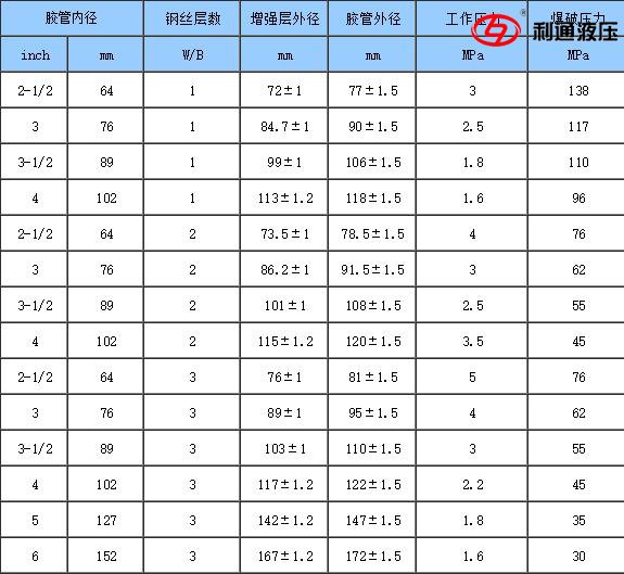 適用于使用石油基液壓油,溫度范圍-40℃~+100℃(-40°F~+212°F)的軟管。